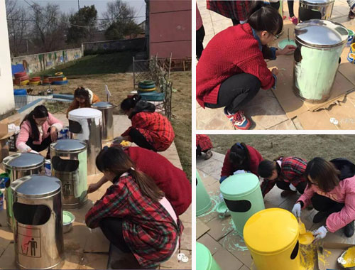 為了進一步提升校園文化,創(chuàng)建更加優(yōu)美的育人環(huán)境,推動幼兒園建設朝著凈化、美化、規(guī)范化的方向發(fā)展,幼兒園青年教師對園內(nèi)垃圾桶進行美化、裝飾。 教師們先選稿、討論設計方案,再畫底稿,最后調(diào)油漆上色。經(jīng)過老師們的巧手布置,原本單調(diào)呆板的垃圾桶一個個鮮活起來。孩子們來園看到一個個五彩繽紛的垃圾桶興奮極了,非常樂意把垃圾撿起來扔進漂亮的垃圾桶里。 據(jù)悉,本次活動是該園繼設計創(chuàng)意家園聯(lián)系欄、廢舊輪胎變廢為寶、裝飾走廊墻飾等活動后的又一次環(huán)境創(chuàng)新活動。這些活動不僅有效促進了該園教師環(huán)境創(chuàng)設理念的更新、提升了創(chuàng)設技能和品位,同時促進了教師之間的相互學習,認識到了環(huán)境創(chuàng)設對幼兒發(fā)展的價值,更為自己積累了有益的經(jīng)驗,為以后更好的開展環(huán)境創(chuàng)設打下堅實的基礎。