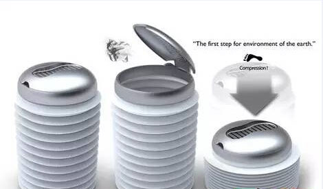 一個節(jié)省空間資源的設(shè)計。當(dāng)垃圾滿了之后,用腳踩踩,還能繼續(xù)裝。