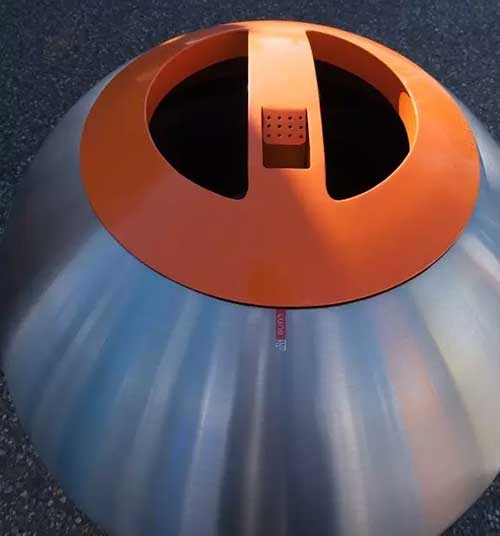 投放口在球身頂部,圓環(huán)形的口蓋顏色可以隨意搭配選擇,就目前所見,在德國柏林采用了醒目的橙色,在荷蘭皮爾默倫德采用了低調(diào)的黑色。蓋子上細(xì)心設(shè)計了一小塊凹槽作為公共煙灰缸專供行人在這里站立吸煙并放置掐滅了的煙蒂。