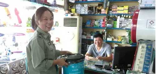 為商戶配發(fā)垃圾桶,倡導(dǎo)文明經(jīng)營(yíng)
